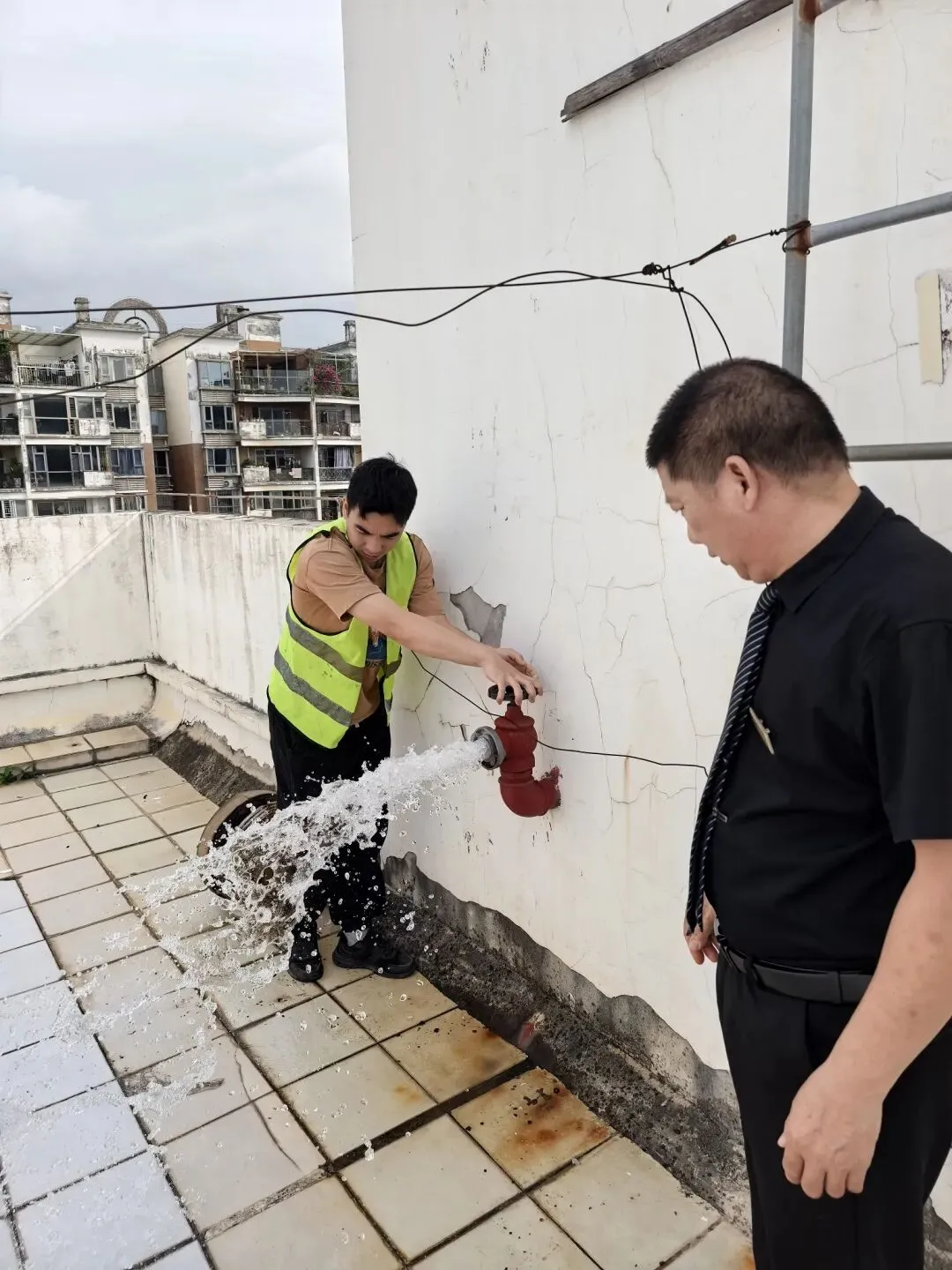 月度维保主机运行测试、楼层故障排除、楼顶消火栓水压测试。