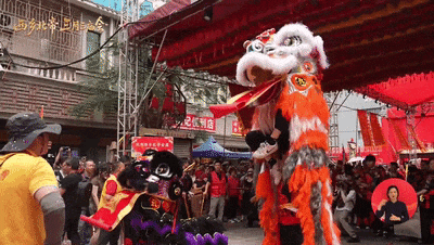龙狮舞腾跃翻滚