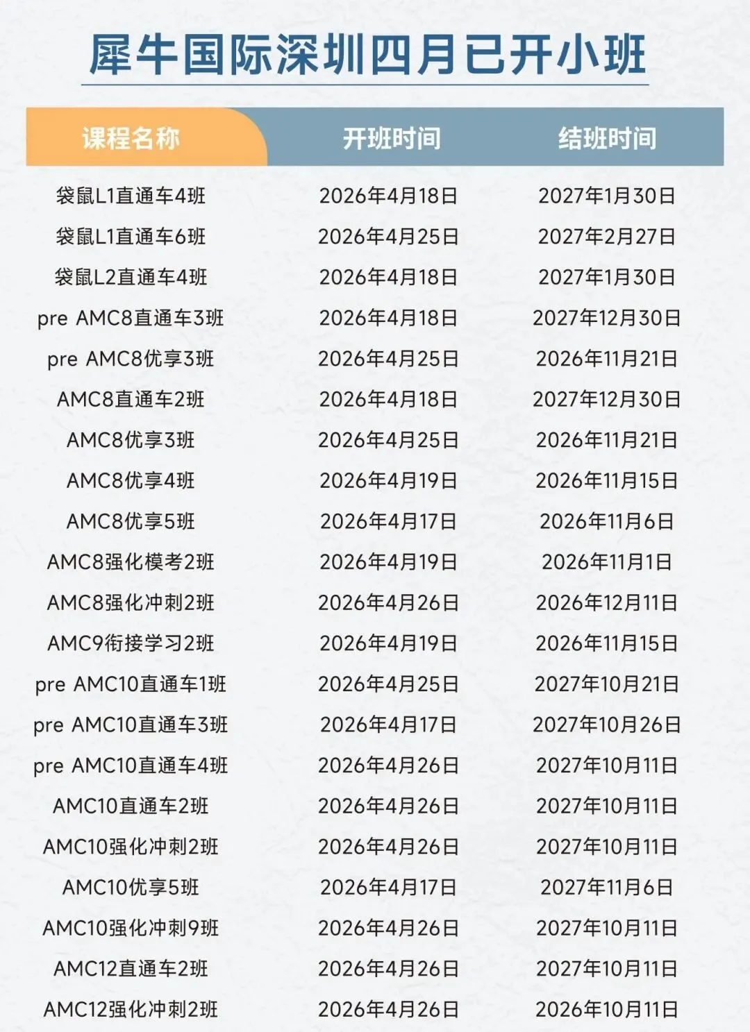 犀牛教育深圳校区开设AMC8/10竞赛培训课程,一对一/4人精品小班课,线上线下同步,精准匹配不同基础学生的学习需求。
