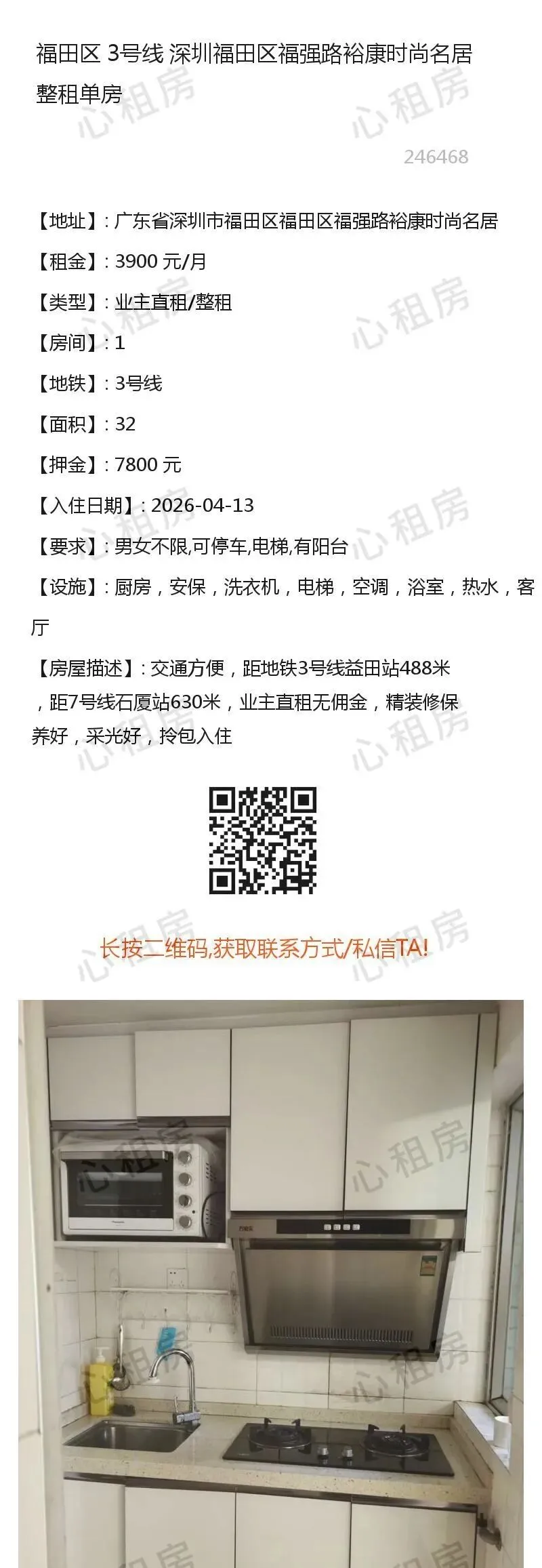 深圳租房>>福田区3号线深圳福田区福强路裕康时尚名居整租单房3900元/月 查看不同房源→→深圳心租房公众号