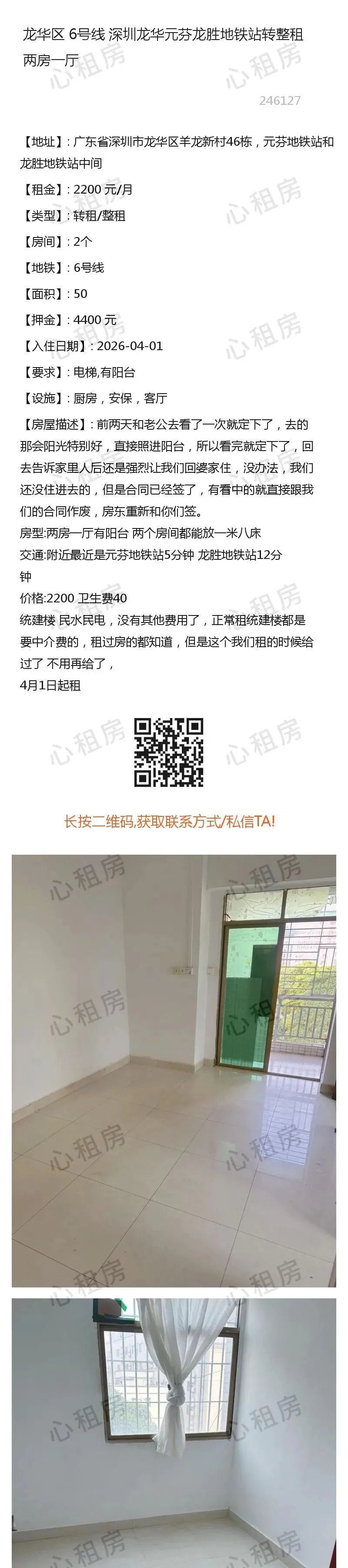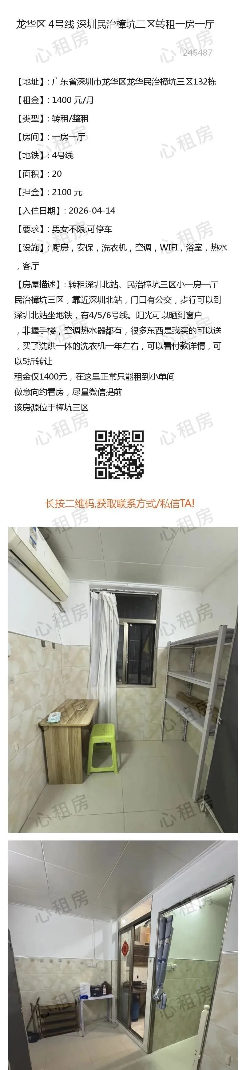 深圳租房【龙华3则】房源①:4号线深圳龙华民治樟坑三区转租一房一厅1400元/月;房源②:…