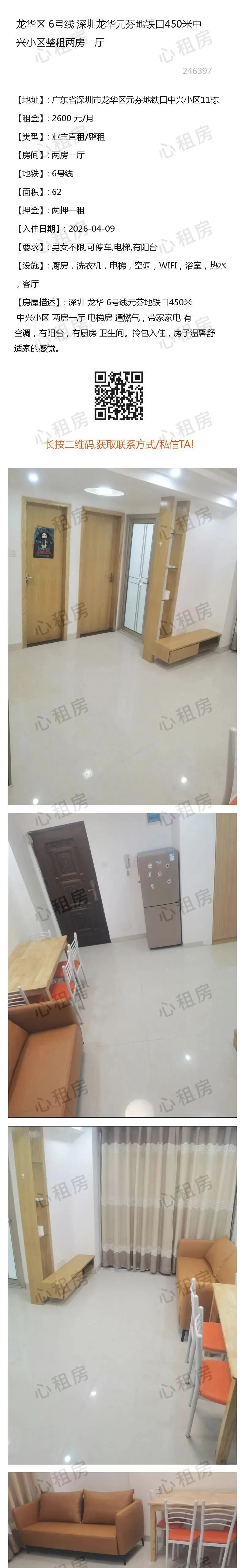 深圳租房>>龙华区6号线深圳龙华元芬地铁口450米中兴小区整租两房一厅2600元/月深圳租房>>龙华区6号线深圳龙华元芬龙胜地铁站转整租两房一厅2200元/月