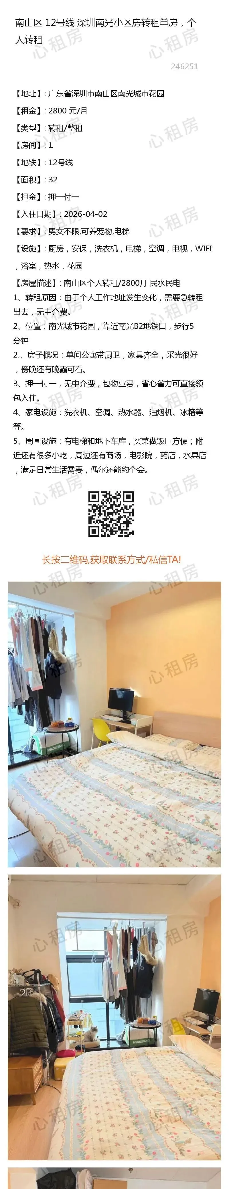 深圳租房【南山6则】房源①:12号线深圳南山南光小区房转租单房2800元/月;房源②:…