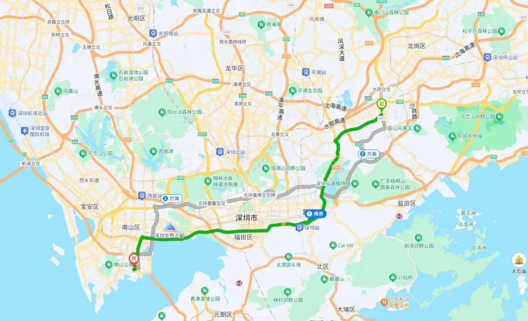 横岗在深圳东部,蛇口在西部,在深圳湾的海边。从横岗到蛇口,要横穿整个深圳市区。中间要转一两次车,乘坐公交大约3-4个小时的车程。
