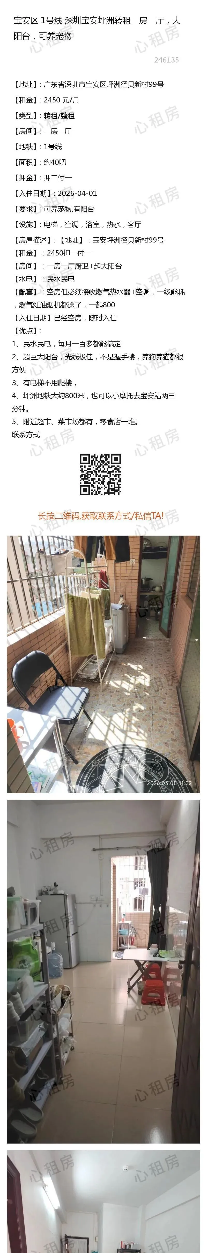 深圳租房【宝安3则】房源①:1号线深圳宝安坪洲转租一房一厅大阳台可养宠物2450元/月;房源②:.........
