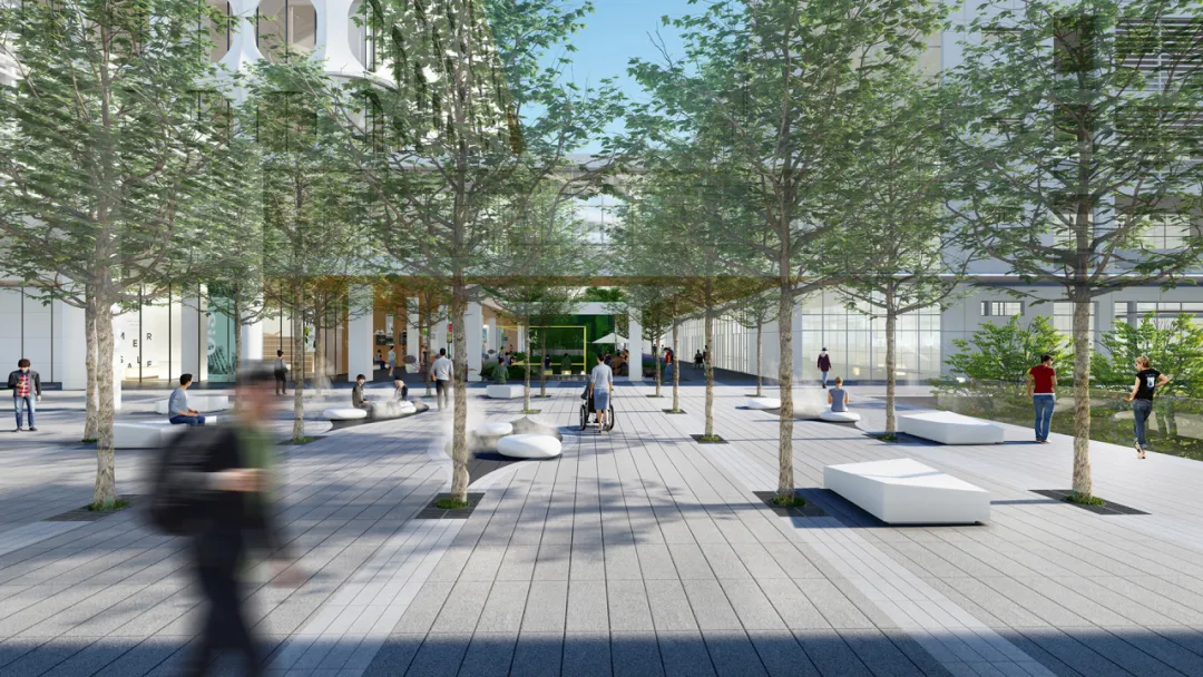 树之广场以中央乔木树阵为核心,自然形成聚集人气的公共空间。