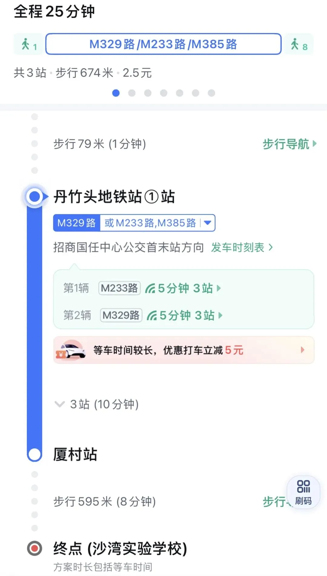 交通指引:地铁3号线丹竹头站A口出,在丹竹头地铁站①公交站,乘坐M329、M233或M385公交,3站即可抵达厦村站,过马路走450米抵达沙湾实验学校。厦村附近有很多吃饭地方,原路下山的可以品尝下。PS:千万不要从B口出,廊桥下去距离公交站很远;丹竹头地铁站附近有两个公交站,别搞错了。公交时间间隔约十几分钟。