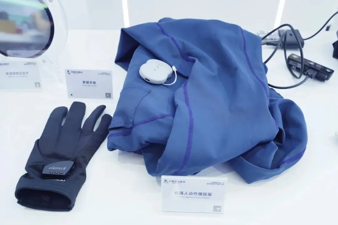 基于弹性拉伸传感器与惯导传感器的柔性可穿戴动捕服,穿戴便捷舒适,可无感采集人体全身运动数据,应用于机器人示教、仿生机器人研发等领域。