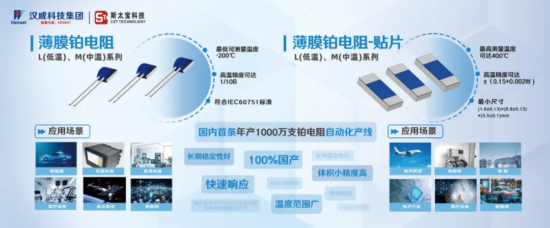 汉威科技集团基于先进的薄膜铂热敏感芯片技术与自建国内首条年产1000万支铂电阻自动化产线,实现了薄膜铂电阻温度传感产品从材料、设备到工艺的全链条自主可控与国产替代。