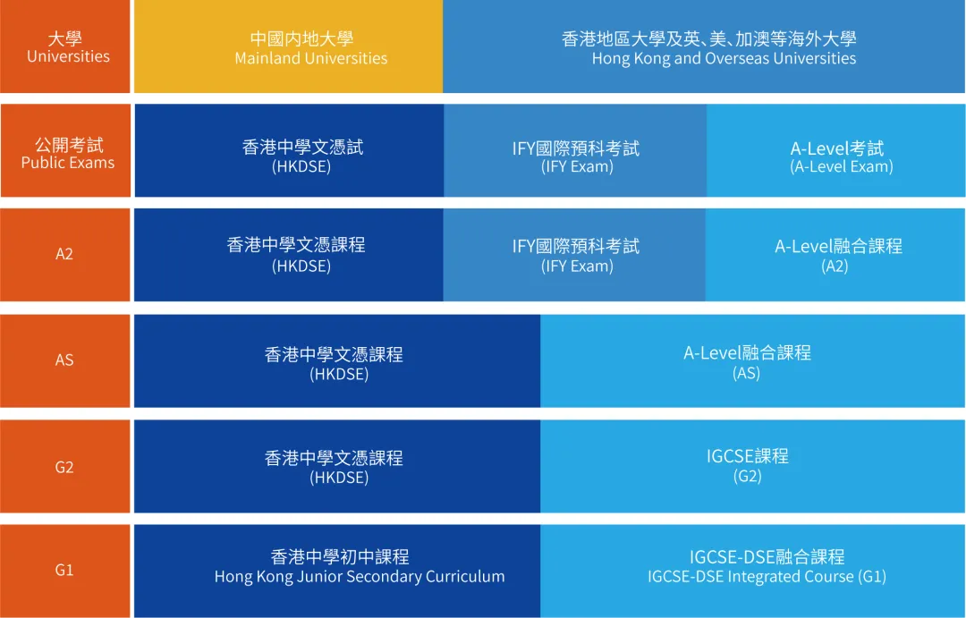 学校同样开设DSE或A-Level课程,实行小班化教学,配备外教+港籍+海归师资团队,综合实力过硬。