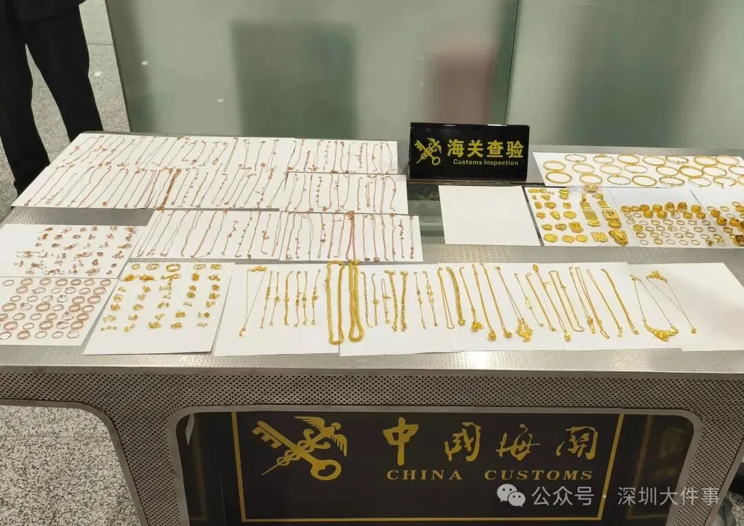 2025年3月,深圳宝安机场海关在对一趟深圳出境航班进行行李查验时,发现楼某、李某等3名旅客未向海关申报,在随身行李和托运行李中夹带手镯、戒指等黄金饰品近400件,总重达2.8千克,明显超出合理自用范围。面对询问,该3人回答前后矛盾,疑点重重,海关立即将线索通报机场海关缉私分局。