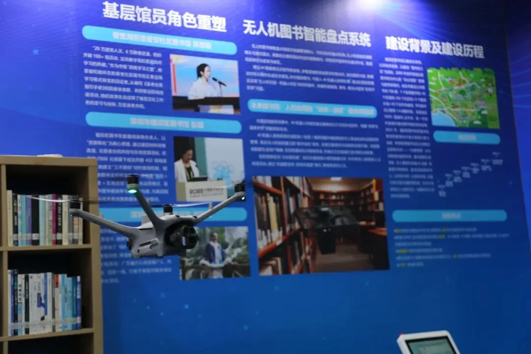 2025年9月,福田区图书馆率先启动“无人机图书智能盘点系统”应用研究。在第二十六届深圳读书月福田分会场暨第五届书香福田读书月“书香福田 智慧阅界”活动中,福田区图书馆正式展示了这套系统,成为全国首个在公共图书馆系统中系统化展示无人机盘点应用的案例。