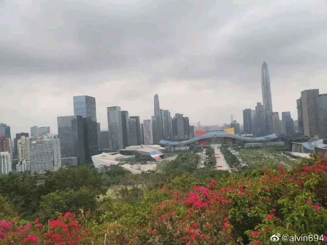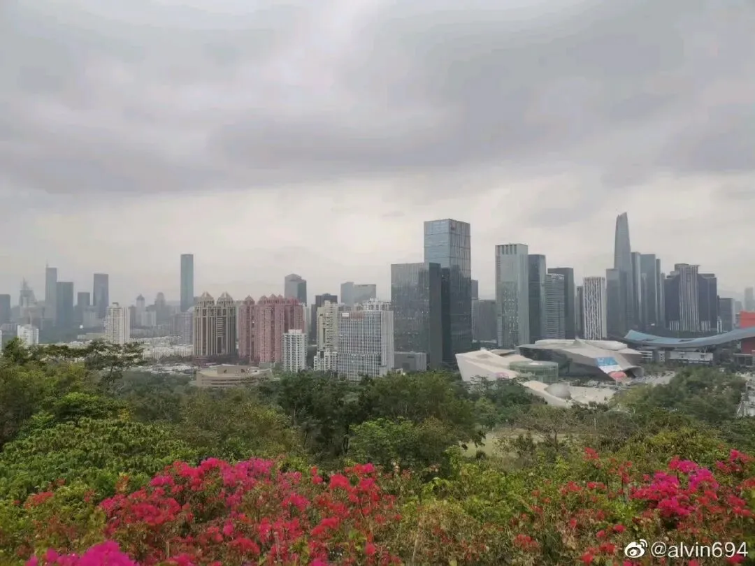 沿着平缓的山路往上走,草木葱茏,清风拂面,站在山顶广场,俯瞰深圳中心区的繁华全貌,高楼林立错落有致,整座城市的朝气扑面而来。