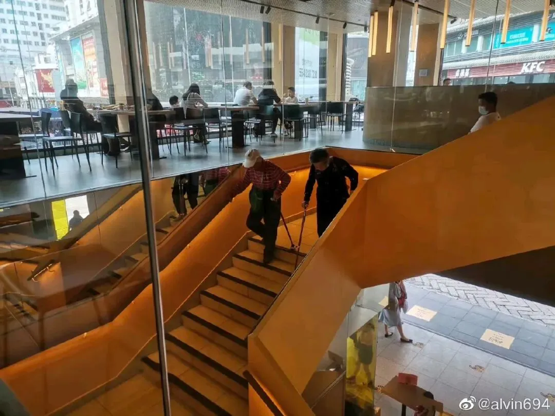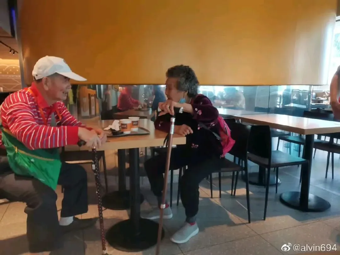 真是“少年夫妻老来伴”啊,两位年过八旬相濡以沫的老人来到麦当劳点了两杯咖啡,坐着隔离聊了会儿天,又颤颤巍巍拄着拐杖离开,看了让人又是担心又是感动……