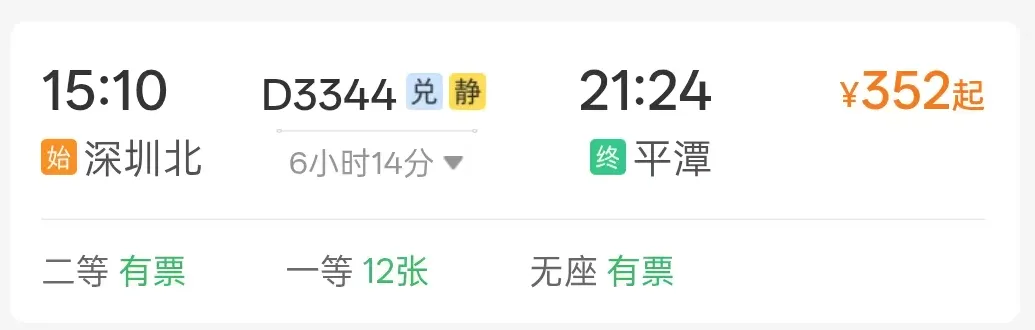 🚇深圳⇋平潭高铁:(沿途会经过福州,可以在福州玩玩!)