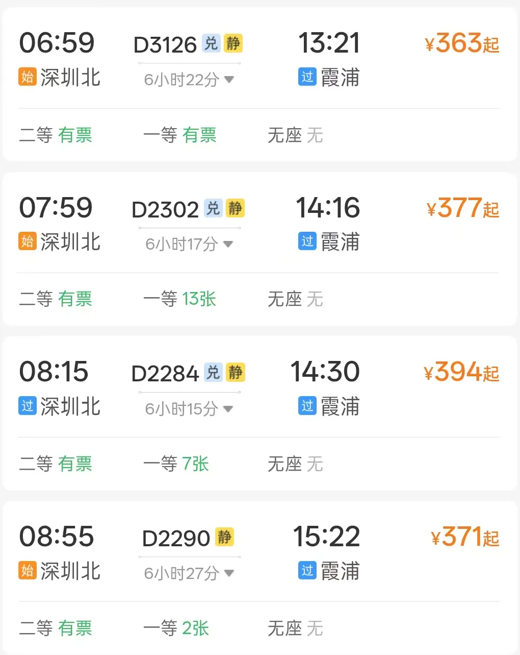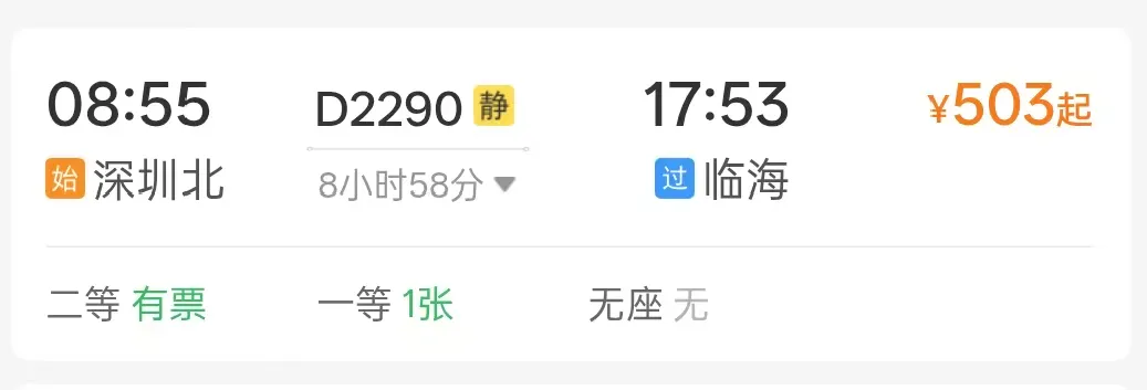 🚇深圳⇋临海高铁:深圳只有一趟直达的列车