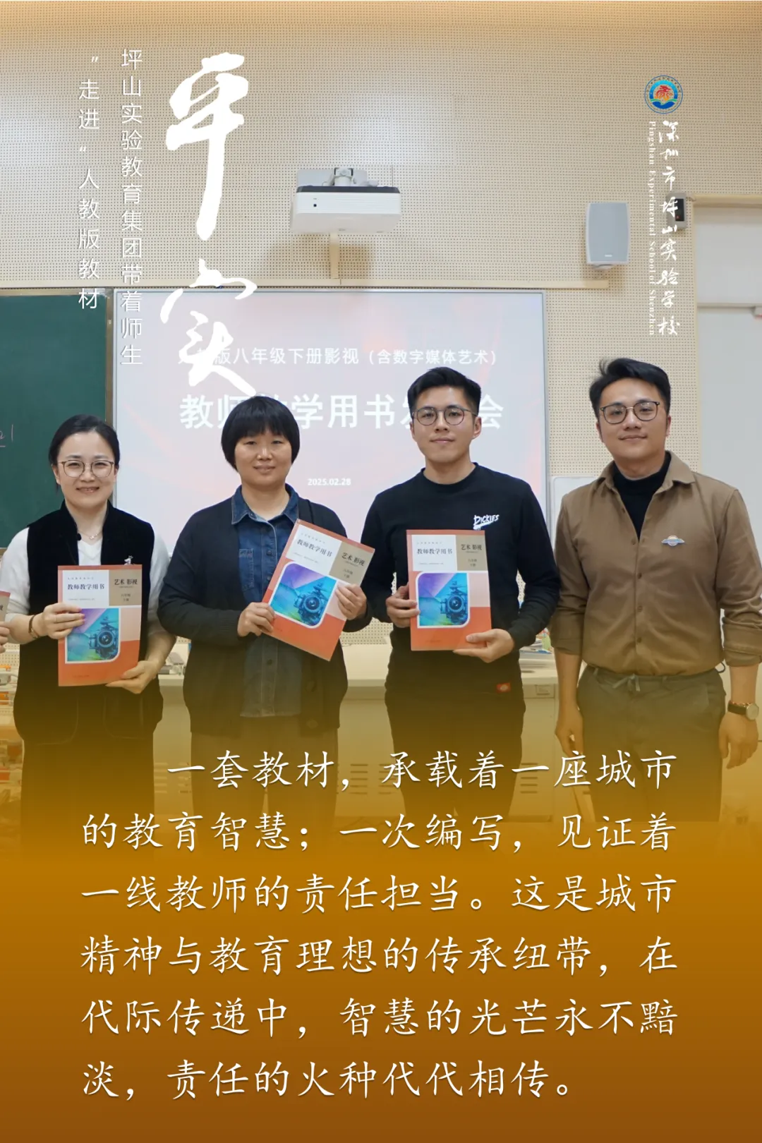 在这套具有里程碑意义的教材中,深圳的教育工作者们留下了深刻印记。坪山实验教育集团坪山区未来学校党委副书记黄志炫不仅是《艺术 影视(含数字媒体艺术)》教材的核心编委,更作为各分册主编,带领教师团队完成了配套《教师教学用书》的编写工作。