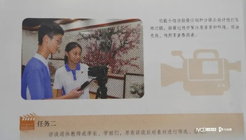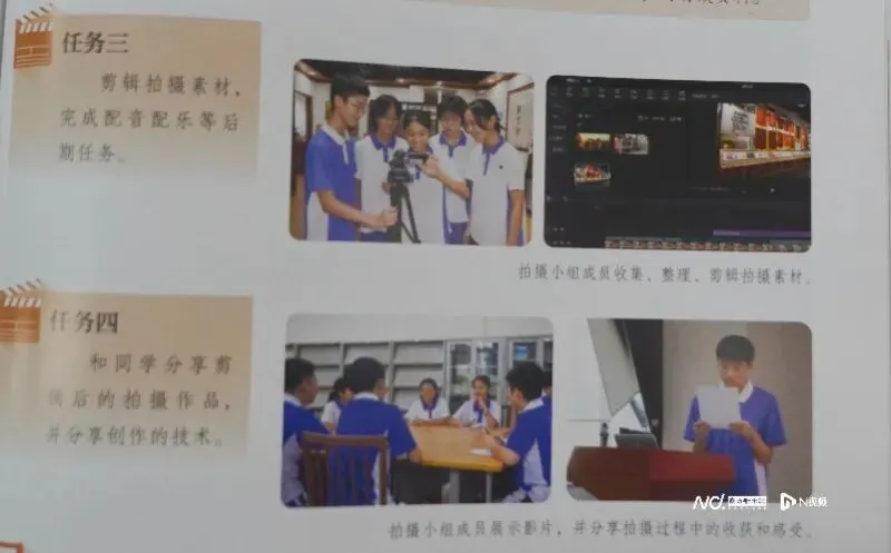 相比高中阶段的《现代媒体艺术》教材偏理论、知识体量大,义务教育阶段的影视教材更强调实践性与动手能力。“你学了影视教材,要能做片子,要了解什么是纪录片、微电影,还要会拍vlog。”黄志炫说,教材中设计了大量探究性、跨学科的学习任务。