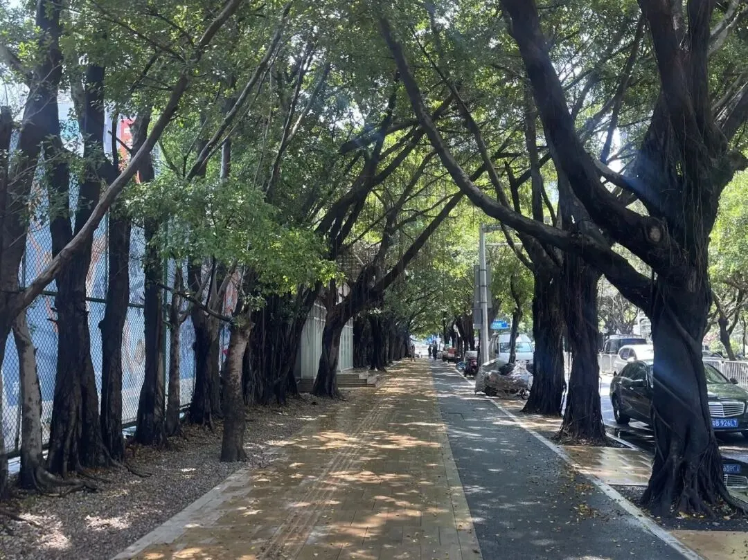 幸运的是没有赶上雷暴,不幸的是从那天开始,鲜少能见到阳光。没有太阳,但热度难抵,深圳因沿海以及巨量植被覆盖带来的水汽蒸腾,无论是市区还是海边,潮热得不分你我。唯一让人宽慰的是现在还没到盛夏,海风吹过,仍有一丝清凉可寻。很难想象一个北方人,看到深圳街道上的树,是怎样的震撼。我经常能看到那种生长了几十年的大树,一棵树由十几根粗细不一的枝干组成,巨大的树冠下绿丝垂髫。不知道是市政在几十年前就已栽下还是它生来就在那里,它们静静地屹立,一同见证着这座城市的成长。我小时候住的地方也有两排老树,夏日绿意成荫,路过常能躲一阵清凉,令人怀念。