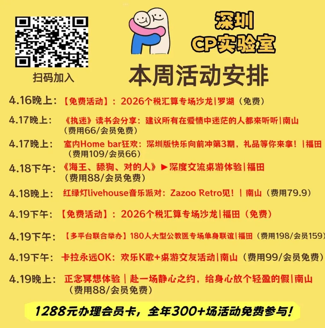 >深圳周末单身交友活动预告|快乐向前冲轰趴、卡拉永远OK、正念冥想课、南山Zazoo音乐社交派对等