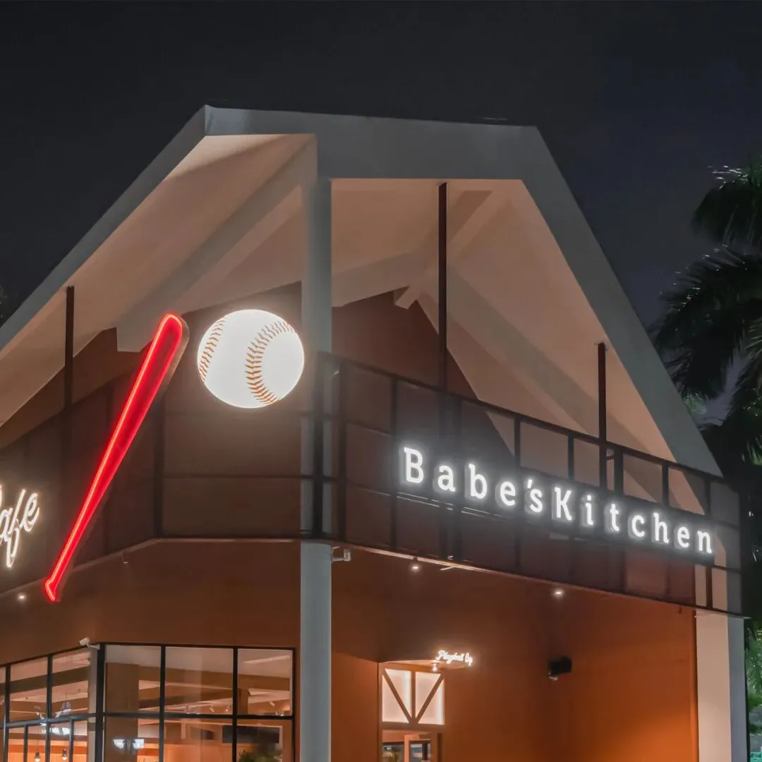 一楼是餐饮空间Babe's Kitchen,二楼是棒球文化展厅。