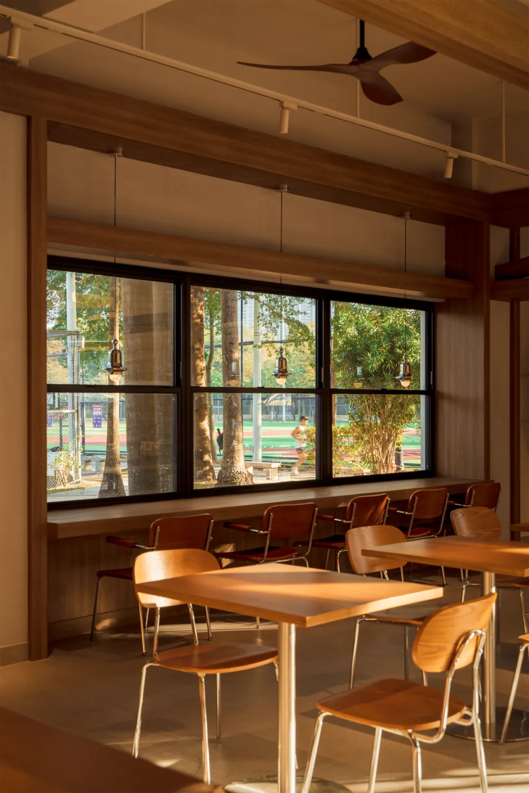 朝向球场侧的墙面打开增设窗口,将棒球运动的活力和更多的公园自然景观引入室内。