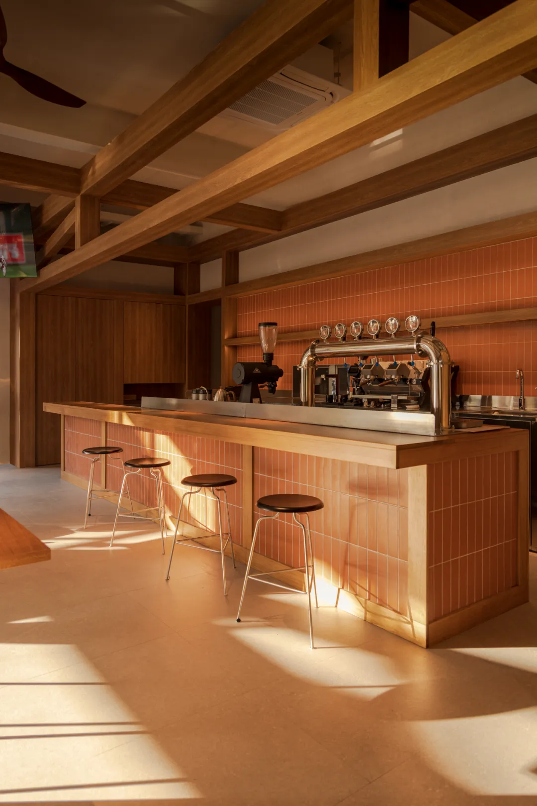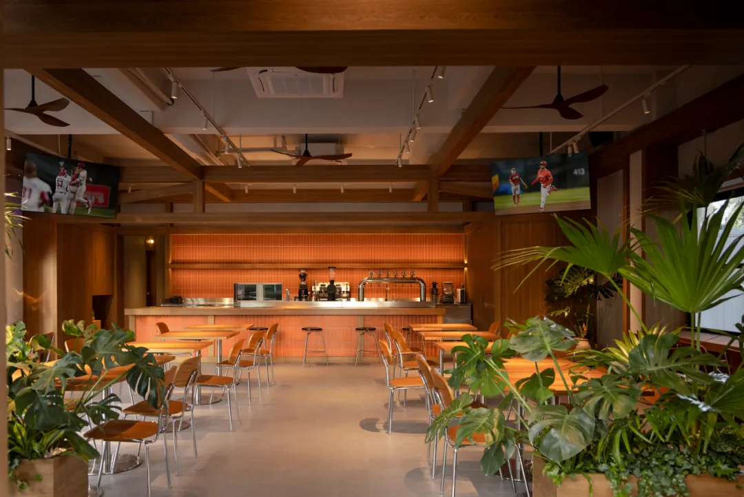 在空间设计中,棒球运动被转化为符号和元素,以色彩与细节融入空间。棒球内场的红土色所蕴含的热情延伸到空间每一处,铺陈为整个场景的底色。