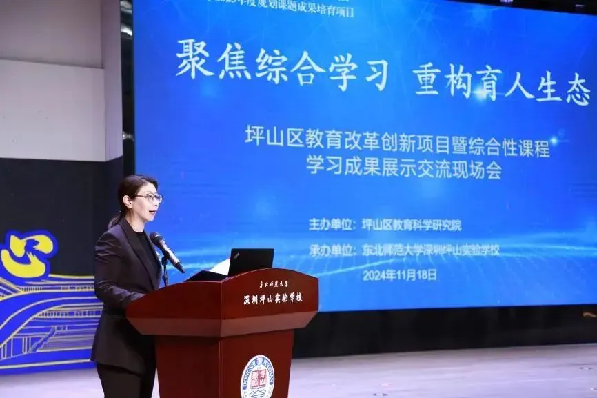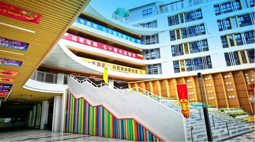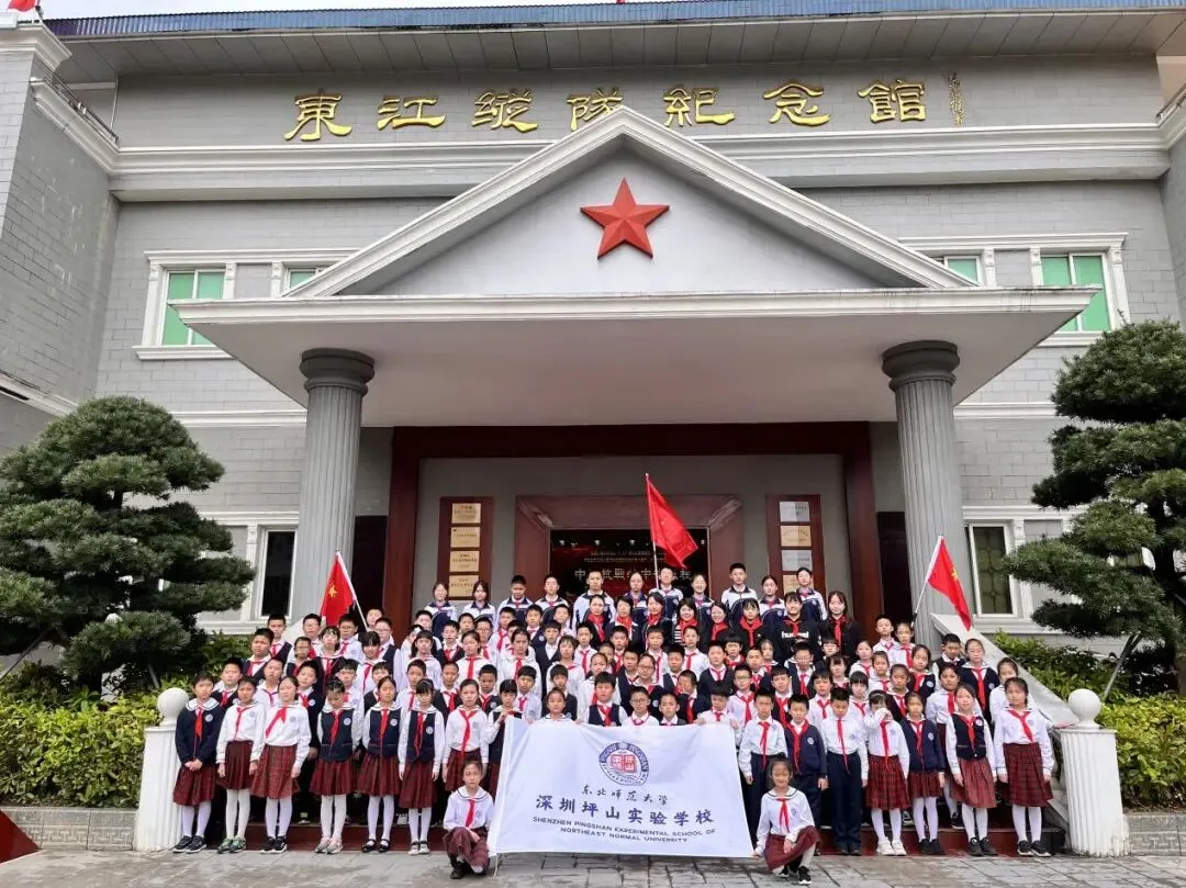 巍巍东师,泱泱岭南,凤栖梧桐,鹏城腾龙。东北师范大学深圳坪山实验学校(简称:东师坪实)是东北师范大学与深圳市坪山区政府合作创办的九年一贯制公办学校。学校位于深圳市坪山区和飞路11号,规划占地5.3万平方米,建筑面积20万平方米,于2021年9月1日正式开办。学校现有9个年级,64个教学班,2884名学生。这里,晨光与书声共沐坪山河的灵动,夜幕与星辉同映马峦山的巍峨。一座承载东师悠久文脉与深圳创新基因的学术殿堂,正以破晓之势崛起于粤港澳大湾区的热土之上。