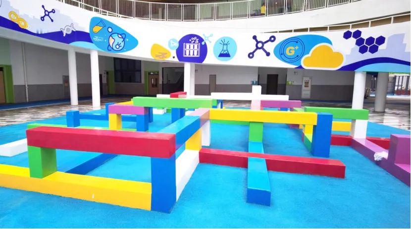 以美育美,以雅育雅,东师坪实的校园具有智慧感、高级风、现代味。学校基础设施先进,每一处校园景观,都饱含潜移默化的育人价值。3000㎡的科创教育场馆群——航天科普中心、人工智能实验室、航空航天体验室、创意孵化室、创意木工室、3D打印室、VR教室、创客教室等编织未来图景;“学思堂”国学教室和“品味轩”茶艺教室弘扬中华文化;古朴的浮雕墙诉说东师文脉,民俗文化展区汇聚南北文化;体育、艺术各类场馆与功能教室兼具人文雅致格调与现代科技气息,助力学子锤炼勇毅品格、涵养高雅气质。