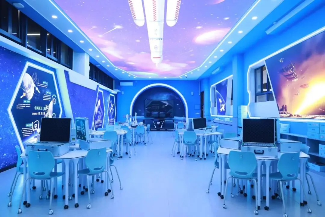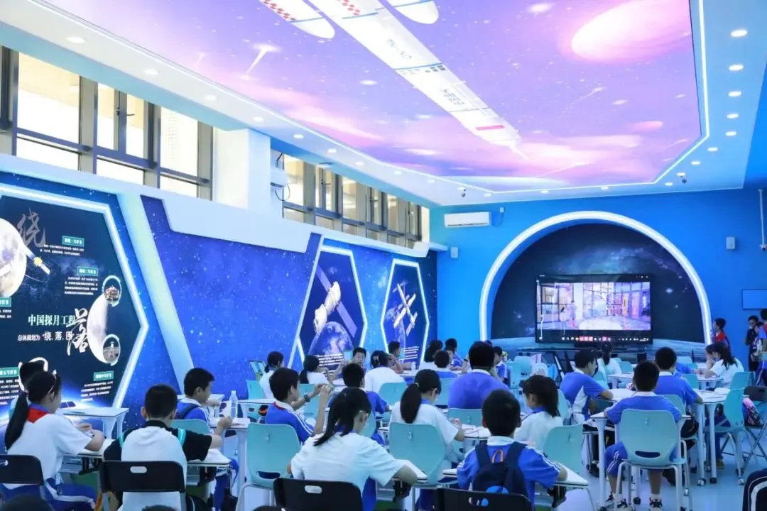 特色校本课程(国学与阅读、艺术与审美、运动与健康、航天与科创、劳动与生活)如同精密齿轮,驱动“生本课堂”的改革实践:小学部构建“三式五步五维”综合学习项目矩阵;初中部以“情境自学-对抗质疑-高阶建模”的学习链,让课堂成为辩证思维的练兵场。