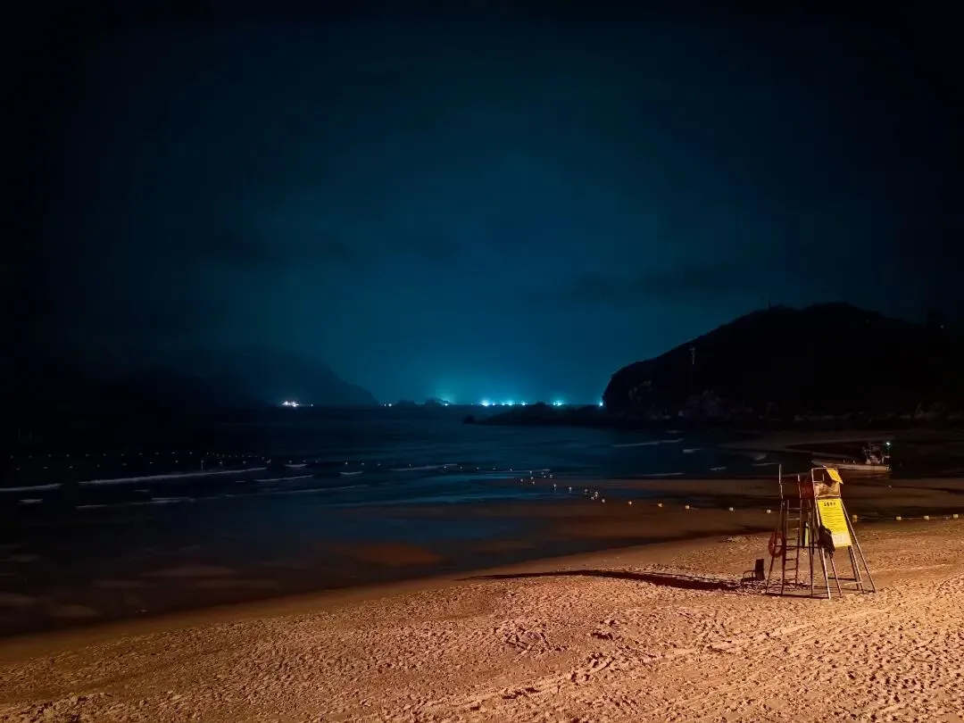 夜晚的海滩人比较少,偶尔几个游泳和散步的。带着心烦来的,一定要在这个时候,戴上耳机,光个脚,走一走,坐一坐,吹吹海风,抑制不住情绪的时候,可以冲个海水浪。没人打扰你,没有烦你,你也不用烦他人…