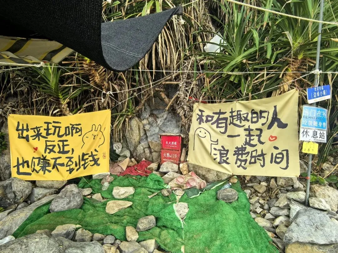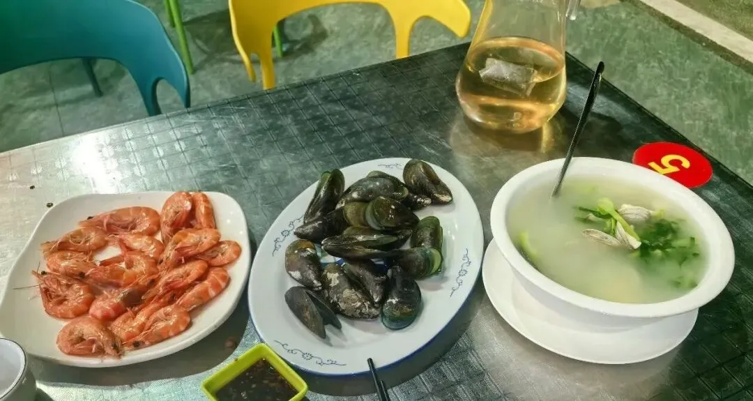肚子渐饿,海鲜点起来,五个菜180,啤酒是少不了的,也甭管尿酸高不高了,肚子和味蕾也要放纵。海鲜确实新鲜,我喜欢水煮和清蒸,够赞。远在美国的儿子,看了分享,做梦一直都流口水...深夜的渔村,格外安逸和宁静,也是我最喜欢的“调”! 徒步,从东涌到西涌,全程8km,沿着海岸线,一面是海,蔚蓝无边,海风吹来,忘记烦恼,也会容易忘记脚下的碎石,容易废鞋和崴脚,安全第一!休息站的moji,如2026内卷的行业景象和牛马的矛盾心态:“出来玩啊,反正,也赚不到钱”。海滩上不足100天的2只喵星人,一定会治愈剩余的疲惫和烦恼!