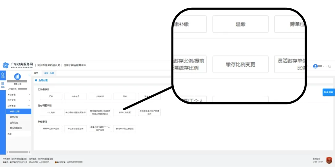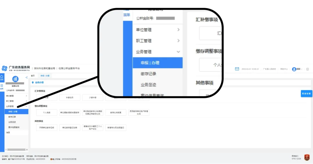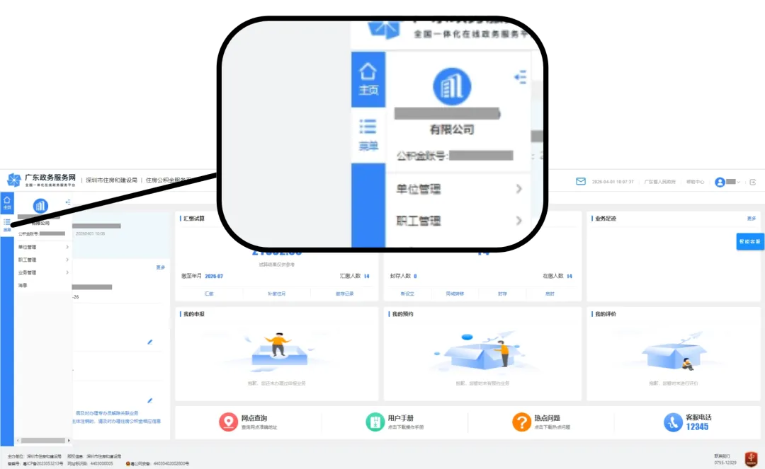 单位专办员可通过刷脸、ODC证书、数字证书、电子印章等方式登录深圳公积金业务在线办理平台,验证通过后选择需要办理业务的单位账户进入业务办理主页。