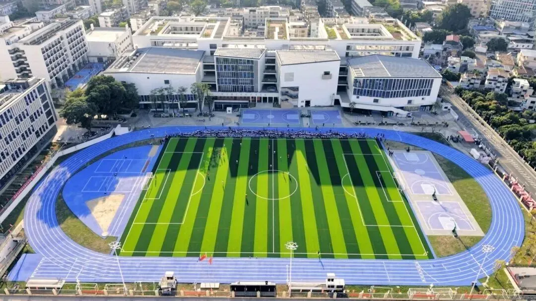 3月12日,一座对标“鸟巢”的足球场正式“出道”。学生们站在新运动场,眼前是绿茵茵一片,脚下踩着国际足联FIFA Quality Pro专业认证、食品级环保材料的草皮,周边400米标准跑道、篮球场、排球场等功能区一应俱全,整个运动场占地1.6万平方米,可以说是配置拉满,排面给足。