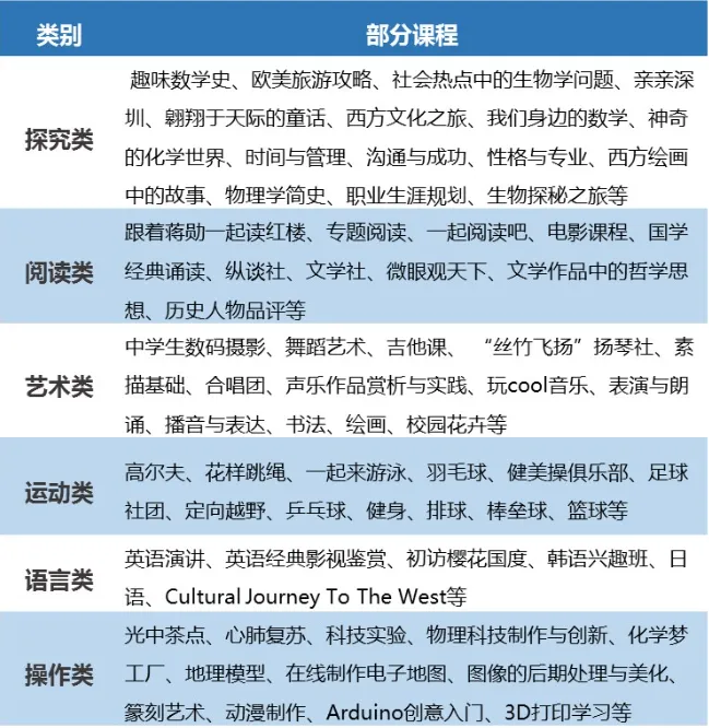 ▲光明中学部分校本课程。