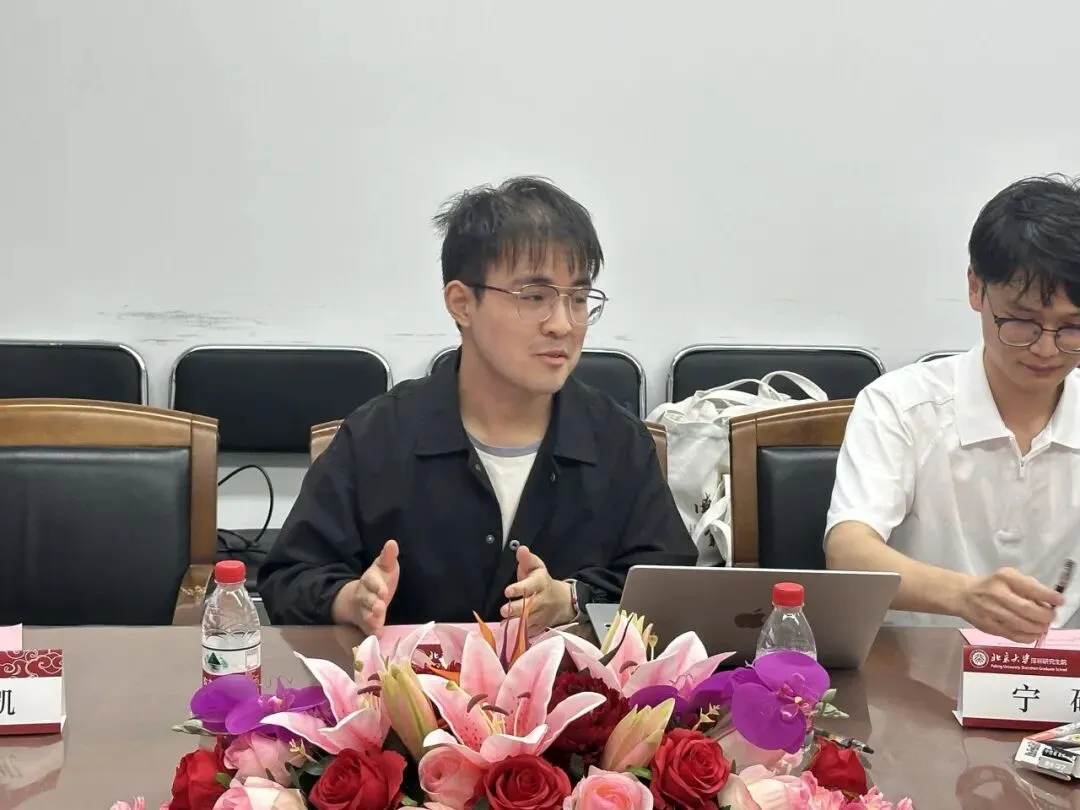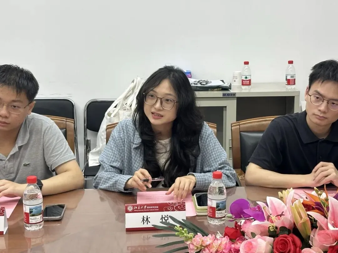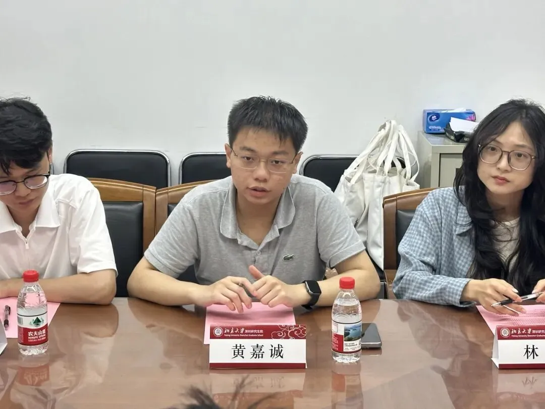 在随后的自由座谈交流环节中,双方聚焦“我为同学做实事”这一核心议题,展开了热烈而深入的讨论。北大深研院研究生会执委会副主席林悦结合研究生群体的实际需求,详细汇报了研究生会在常态化服务项目与权益维护方面取得的进展,并针对同学们普遍关注的就业实习、学术科研等问题,具体分享了研究生会近期服务同学的具体举措及后续效果评估机制。深圳市学联驻会执行主席梁海胡、陈思敏、肖明杰对大家的分享交流给予高度肯定并积极回应,他们结合深圳市层面的资源优势与工作经验,与学生骨干们就如何进一步拓宽服务渠道、创新活动形式、强化意见收集等议题进行了深度经验互鉴与思想碰撞,现场交流气氛十分活跃。