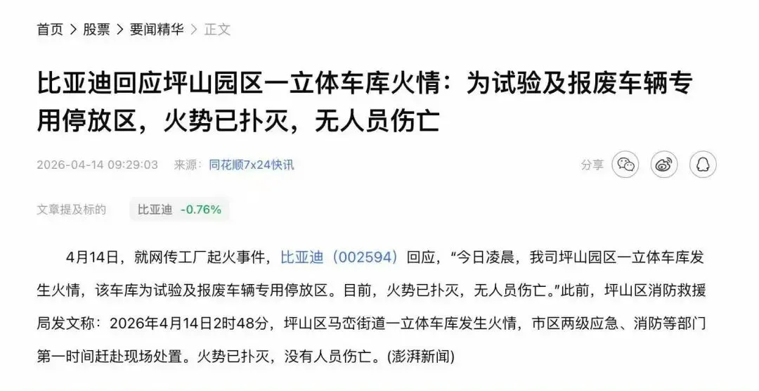 比亚迪官方通报也来的很及时,试验车和报废车的立体车库,不然又一堆媒体小题大做了