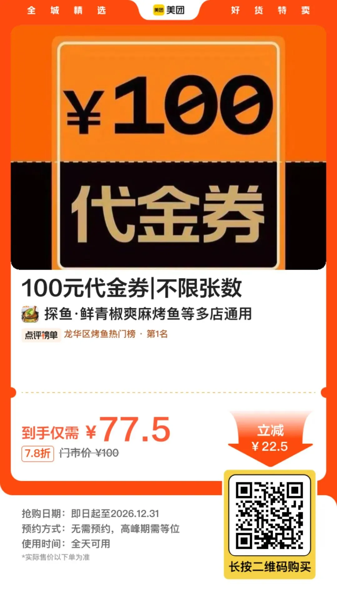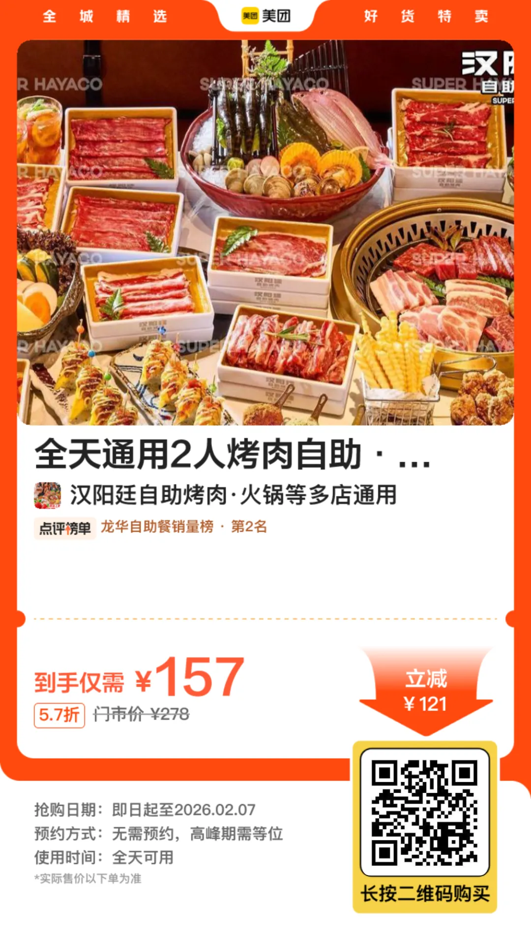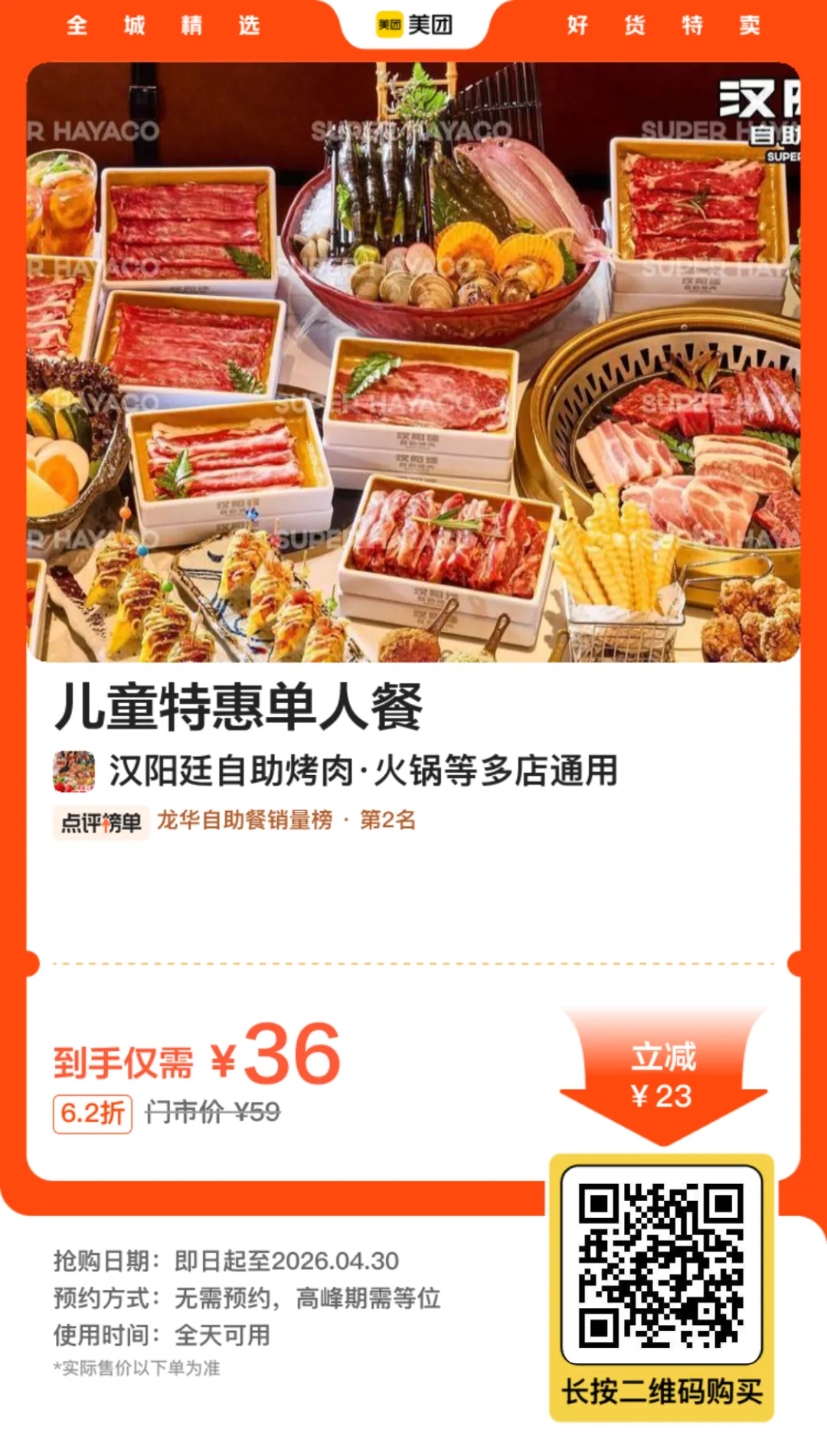 如果觉得我们的产品确实优惠,或者还需要找到其他优惠产品,请扫码进入吃喝玩乐群,我们每天都会推荐各种特实惠的美食、饮品、门票等。