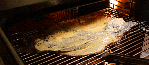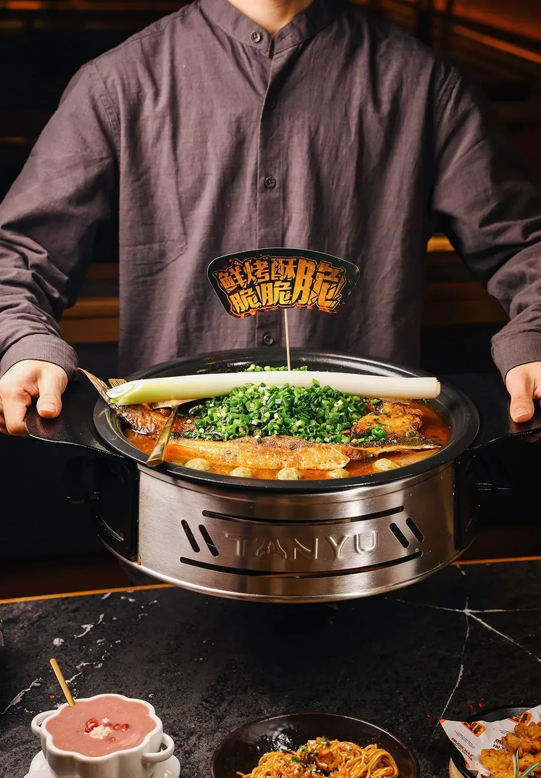 鲜青椒葱葱脆皮烤鱼 浓郁的葱香与椒香,麻与章丘大葱带来的甜味,整道烤鱼麻辣鲜香,先吃酥脆鲜香的鱼皮,再吃鲜嫩的鱼肉,这份烤鱼吃完幸福感油然而生!