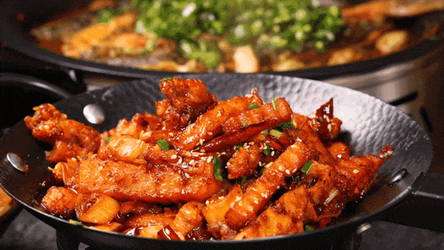 香酥怪味牛蛙锅特选四种辣椒精心配比香绝底酱,再加入秘制怪味汁,牛蛙肉质饱满又紧实,外脆里嫩鲜香入骨,强烈建议每一个爱吃牛蛙的都尝尝看!