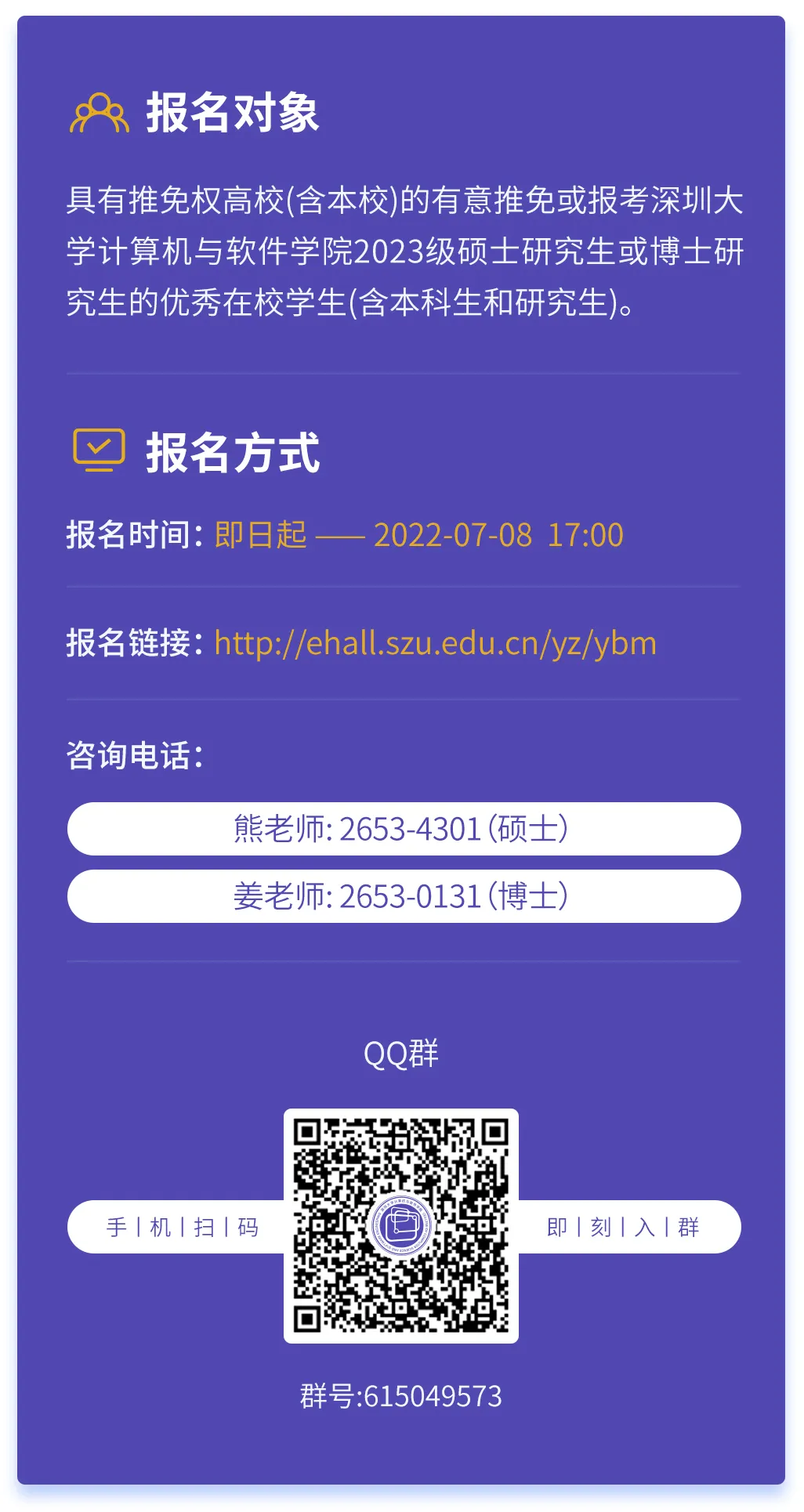| 7月16日 | 集中面试 优秀的夏令营营员将有机会被提前预录取为学院2023级推免生 |