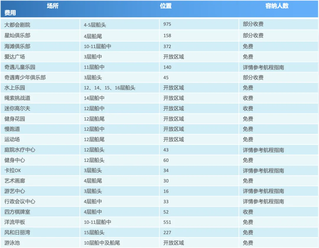 (以上为邮轮活动介绍部分为收费活动,