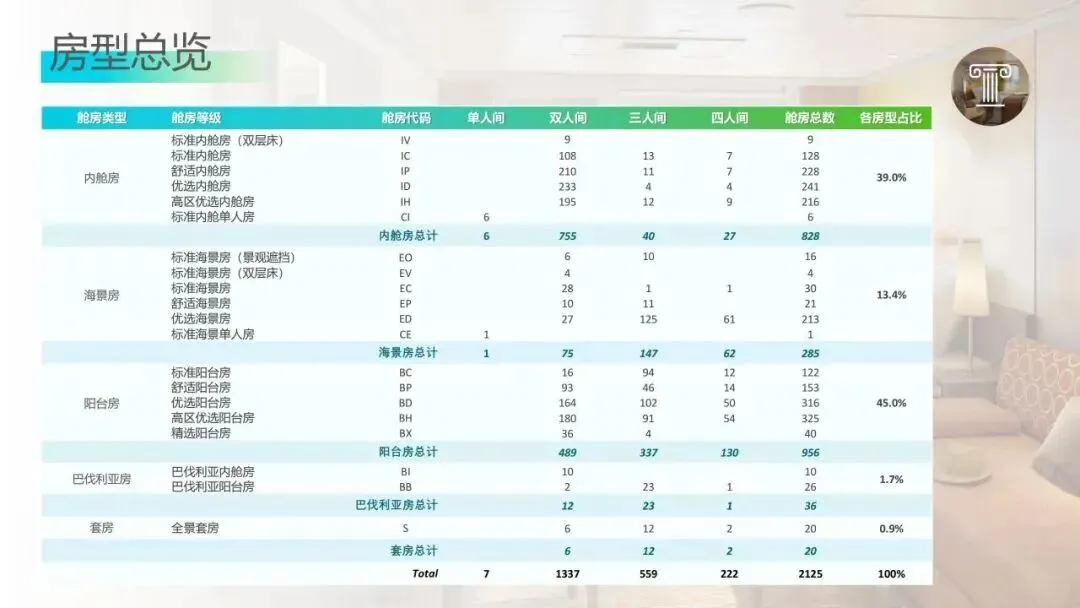 13.55 万吨,15 层甲板,2125间客房