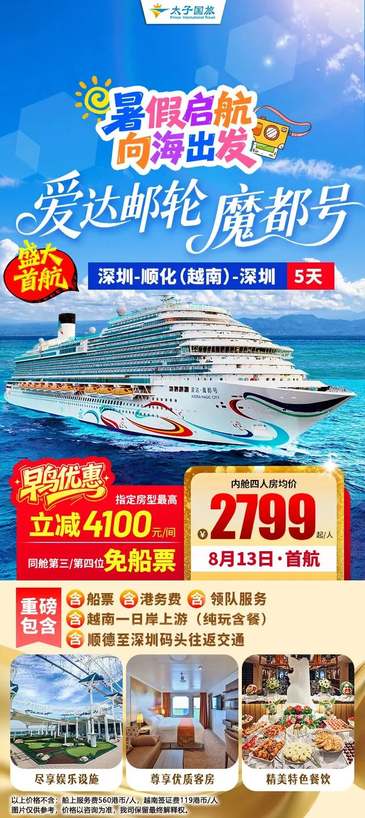 首次来深圳啦!中国首艘国产大型邮轮【爱达·魔都号】仅在深圳短暂停留,想体验的老友记千万别错过~2026暑假启航~早鸟优惠,最高立减5K!