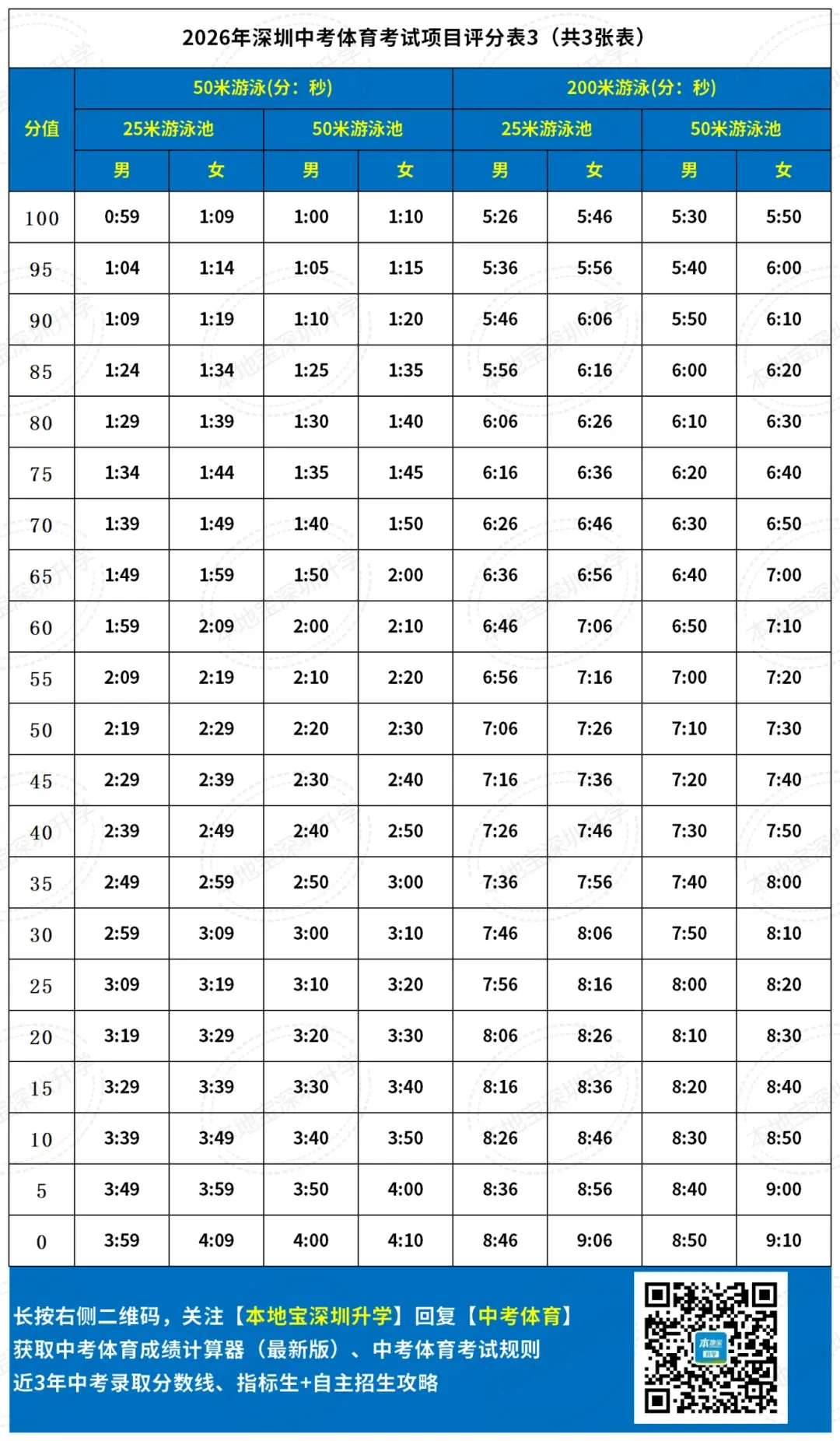 长按下方二维码,进入【本地宝深圳升学】回复【中考体育】获取深圳中考体育考试项目评分标准、考试项目规则、各项目演示视频