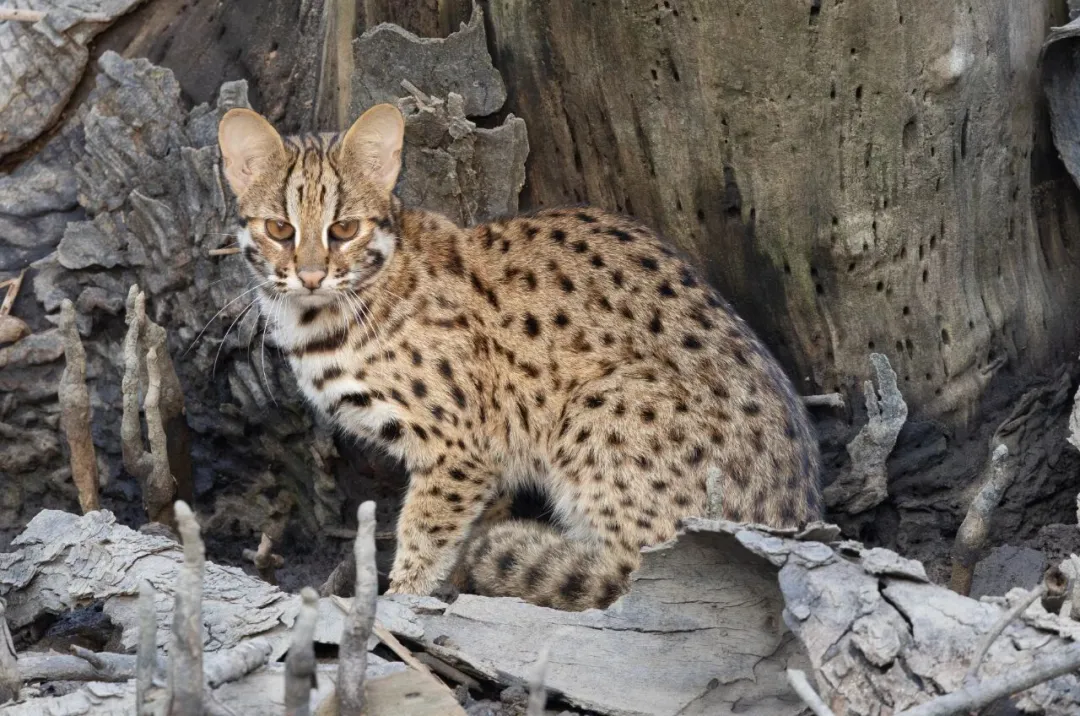 它们主要在夜间活动,以老鼠、鸟类和小型哺乳动物为食,是城市生态系统的顶级捕食者。近年来,深圳福田红树林生态公园多次用红外相机记录到豹猫的身影,影像里它警惕地张望,像极了一只「小老虎」在巡视领地。