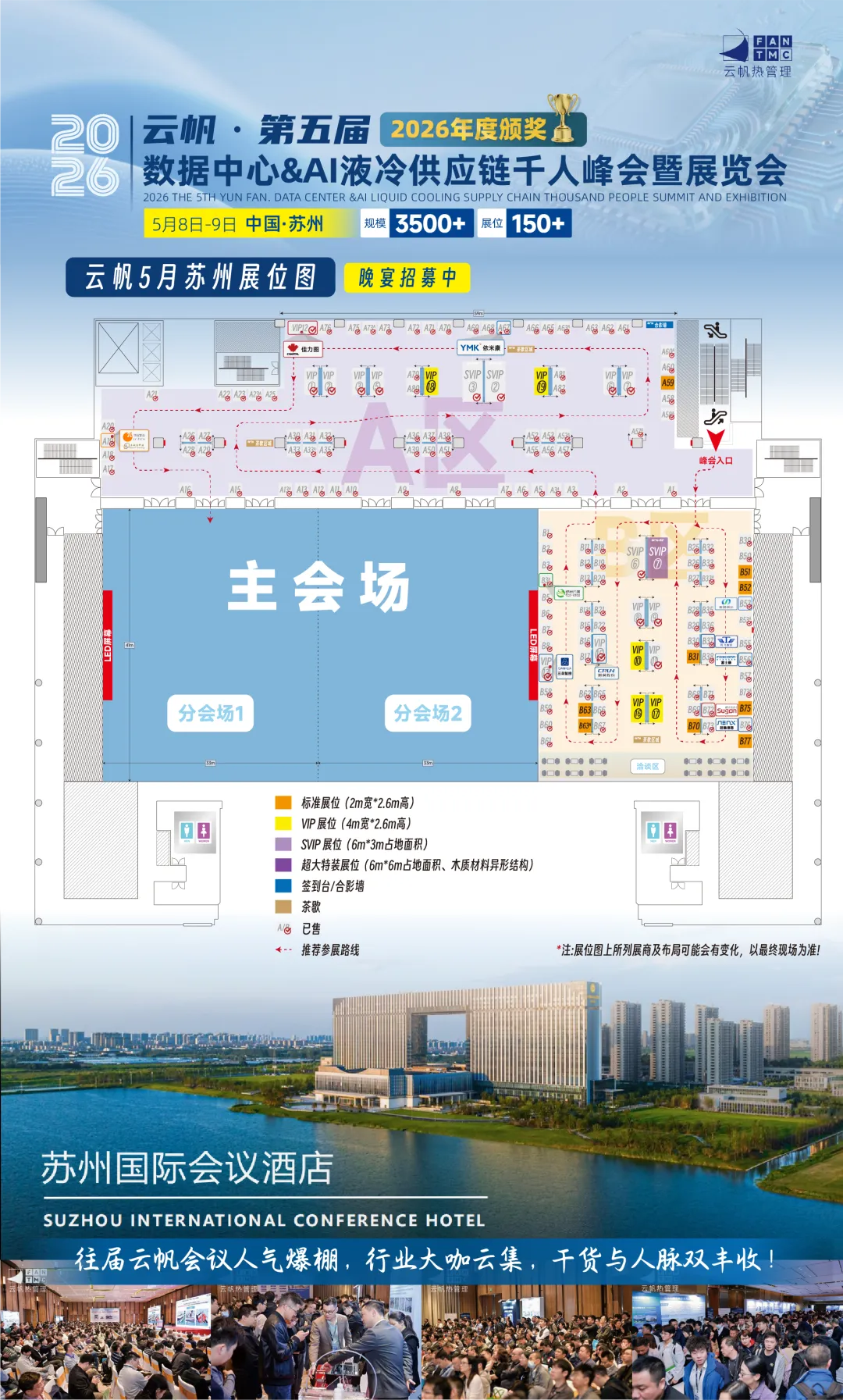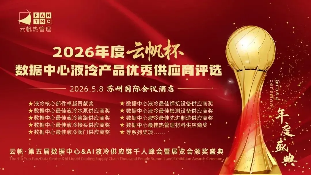 由云帆热管理主办的2026第五届数据中心&AI液冷供应链千人峰会暨展览会将于5月8-9日在苏州国际会议酒店举办,大会聚焦冷板式&浸没式数据中心液冷技术、数据中心CDU及液冷组件开发(液冷板、液冷管路、液冷接头、液冷阀门、液冷水泵、换热器等)、AI服务器热管理技术、AI芯片液冷与散热设计、芯片热管理材料等。