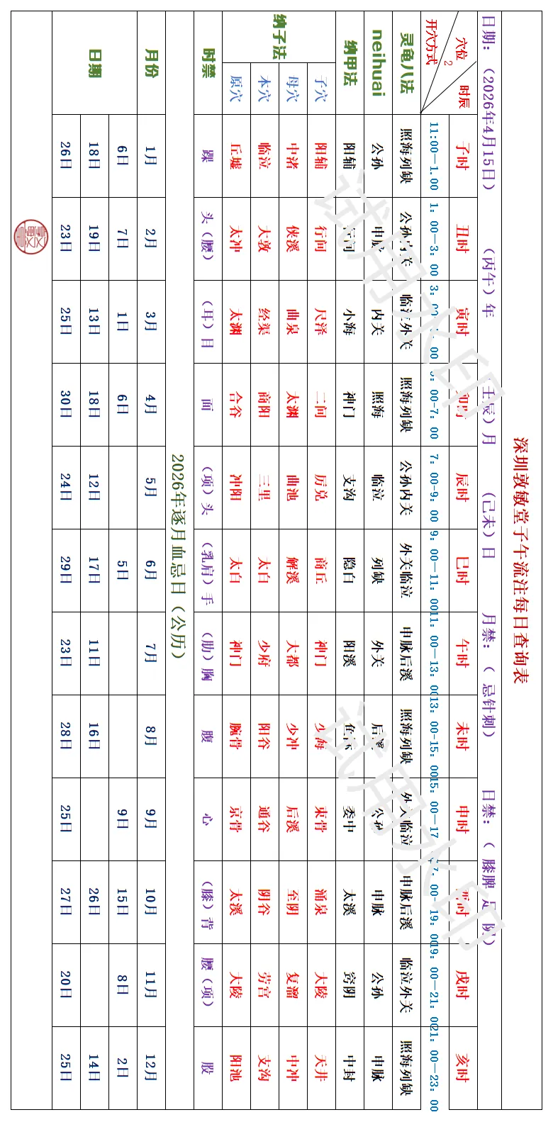 深圳敦敏堂《子午流注:今日开穴》 2026 4月15日