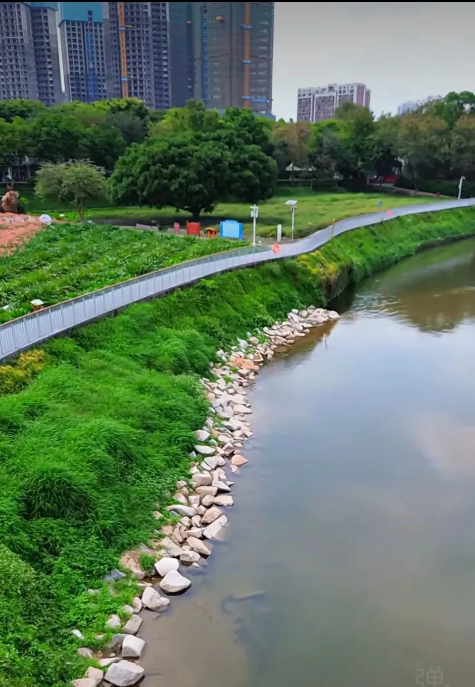 抬眼还能望见观澜河的碧波悠悠,河畔绿草如茵,远处的高楼与自然景致相映成趣,勾勒出城市里难得的诗意画面。