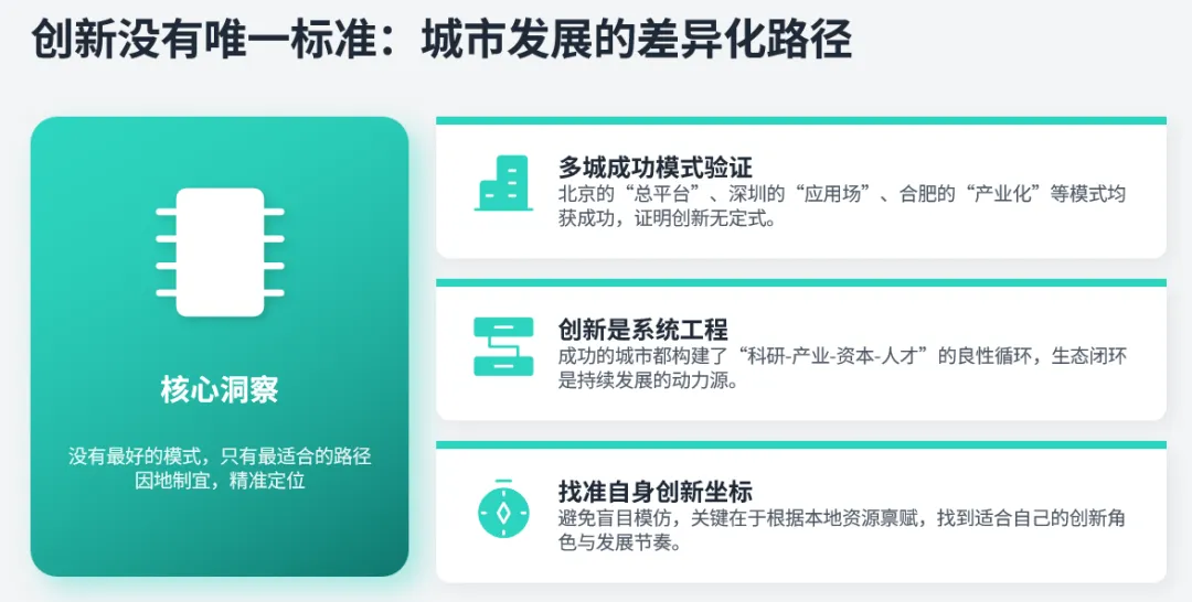 北京做基础研究、深圳做应用转化、上海做国际对接、合肥做产业赌注——每种模式都有价值,但没有一种模式可以复制到所有城市。